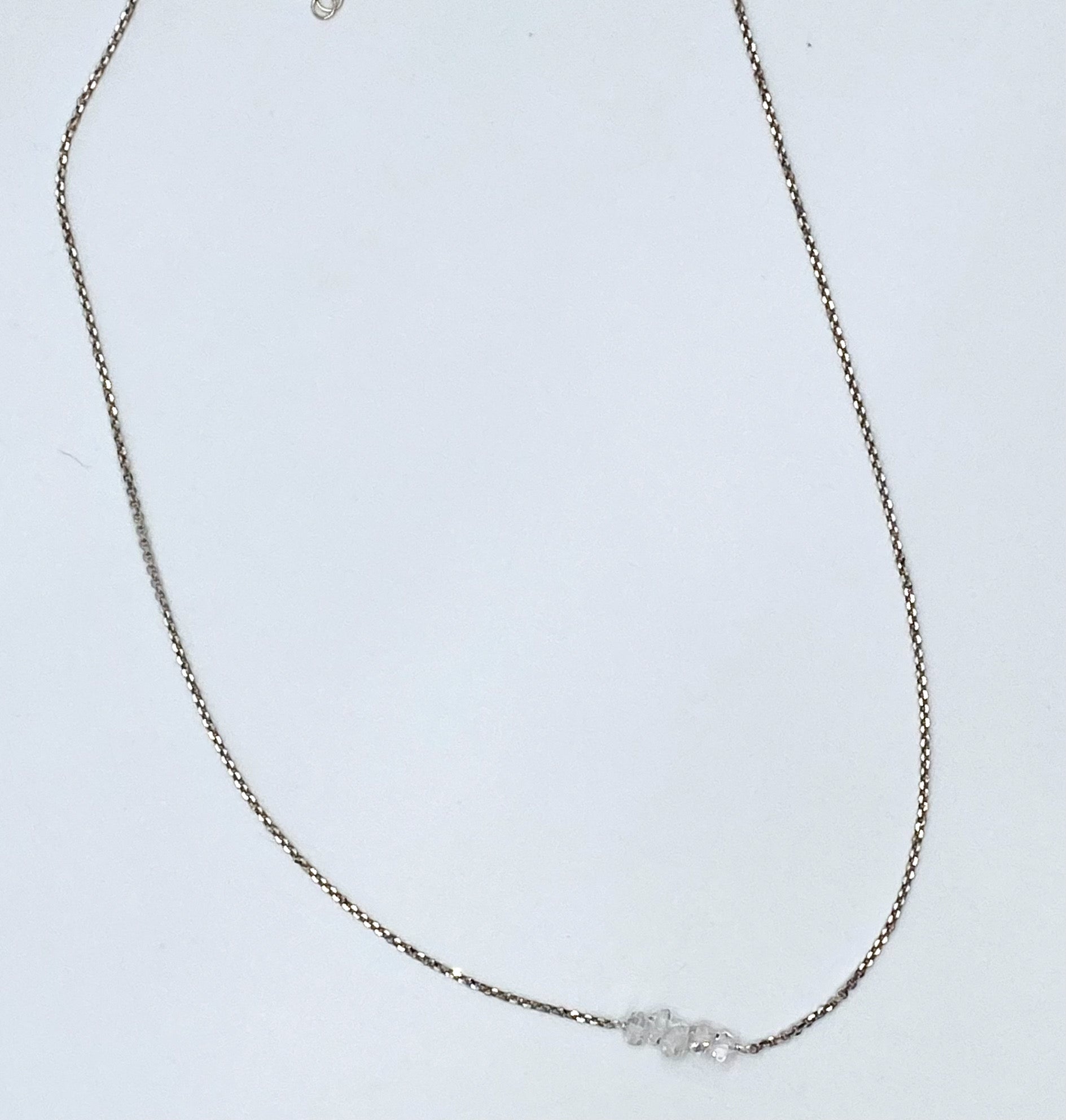Five herkimer diamonds on sterling silver chain. 16” with 2” extender.