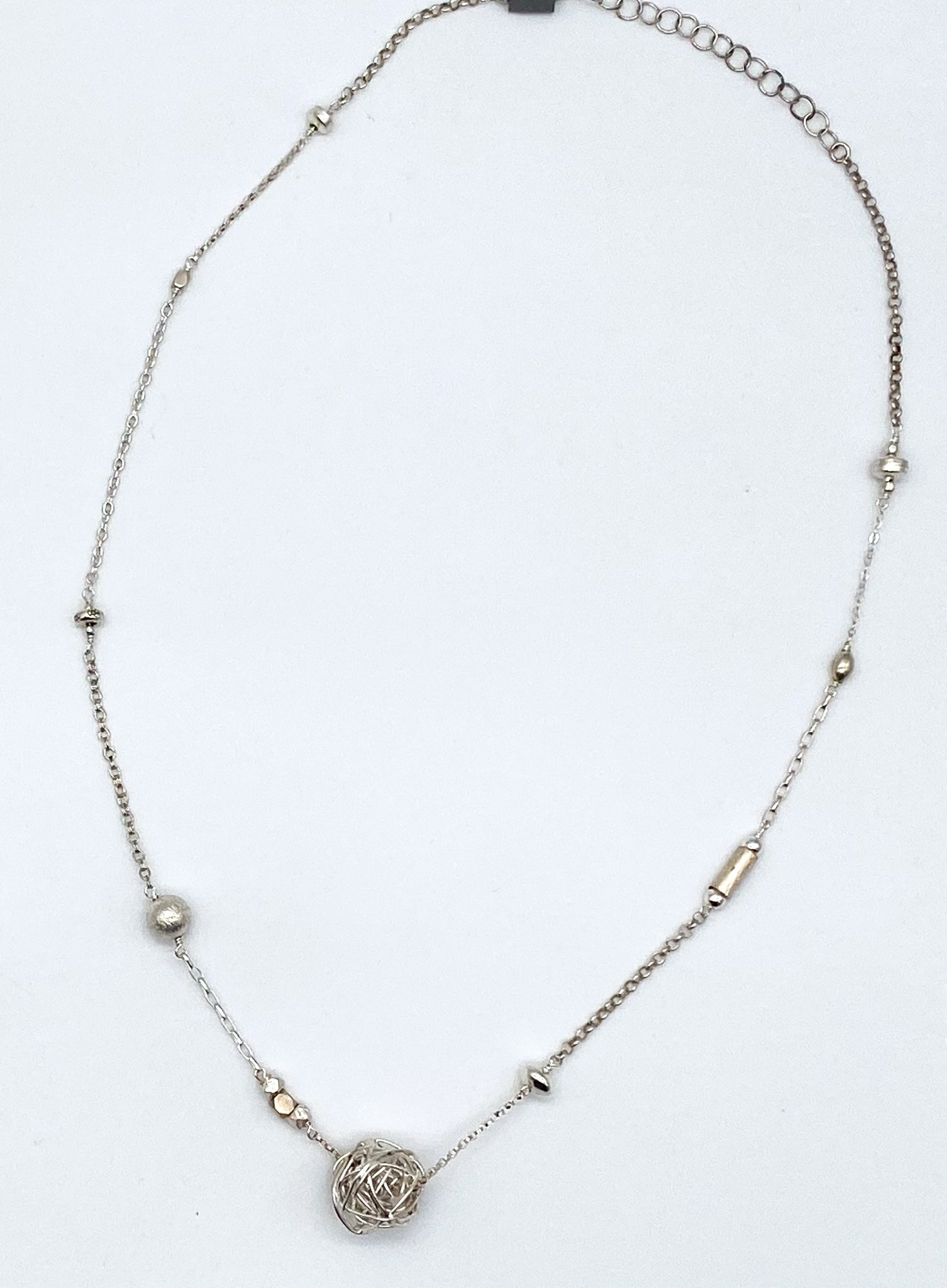 Assorted sterling and Thai silver beads connected by sterling silver chains. 16" with 2" extender.