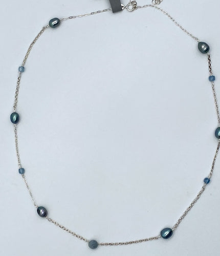 Pearl and kyanite necklace